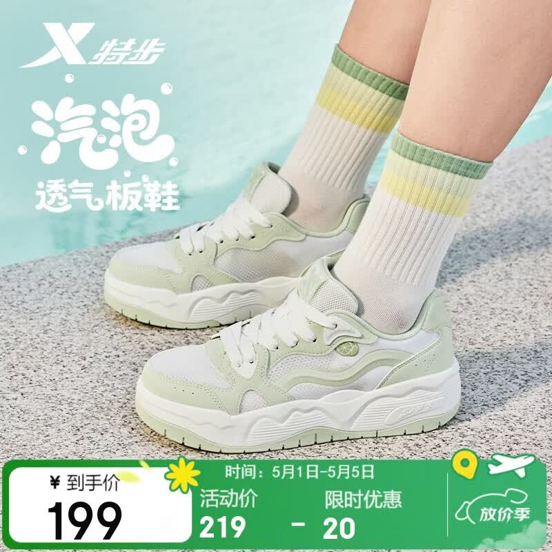 特步气泡丨女鞋运动板鞋春夏透气小白鞋增高软弹轻便简约运动鞋子女