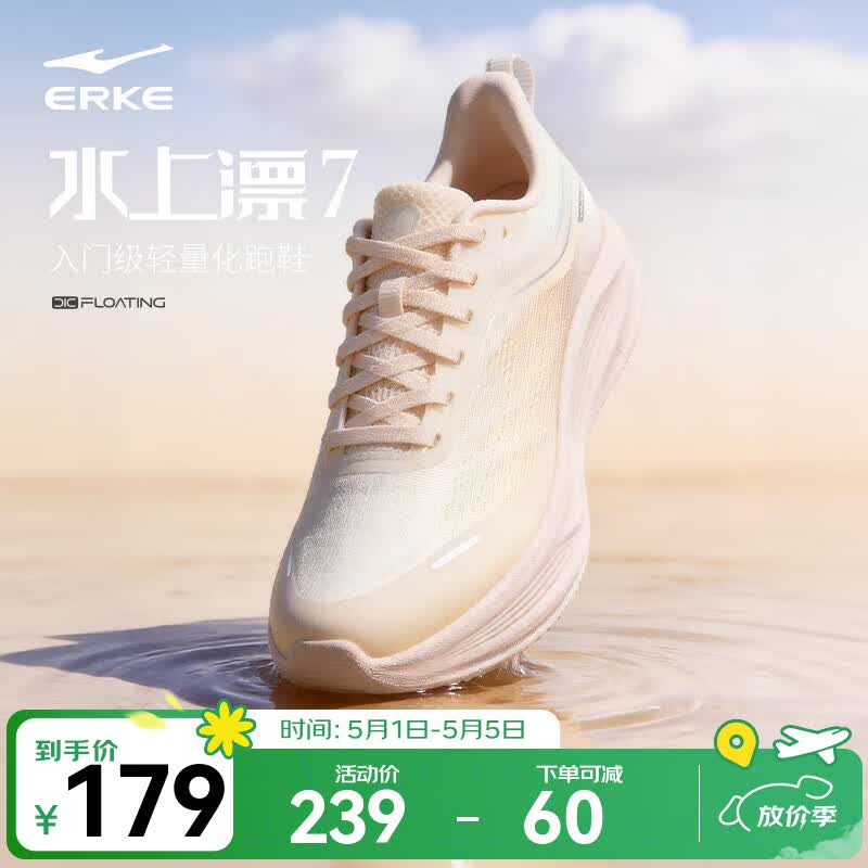 鸿星尔克水上漂7跑步鞋女鞋春夏季新款网面透气运动鞋超轻跑鞋子送妈妈 【海贝】微晶白/海贝粉 37