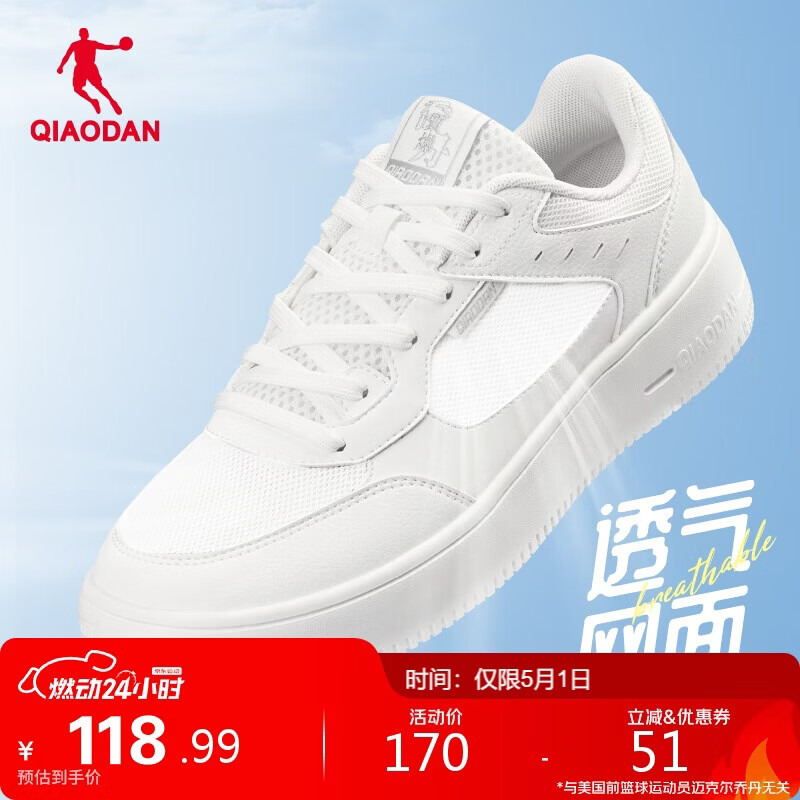 乔丹女鞋板鞋透气网纱夏季小白鞋轻便潮流休闲鞋凉感百搭运动鞋