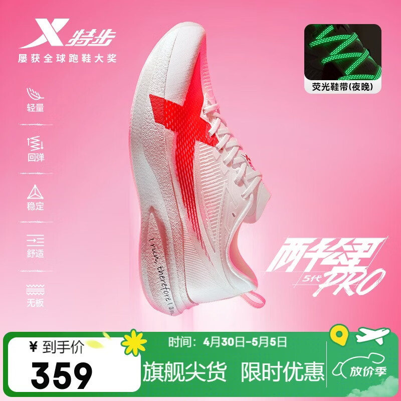 特步两千公里五代PRO跑鞋运动鞋体考轻便减震透气无板竞训跑步鞋女鞋