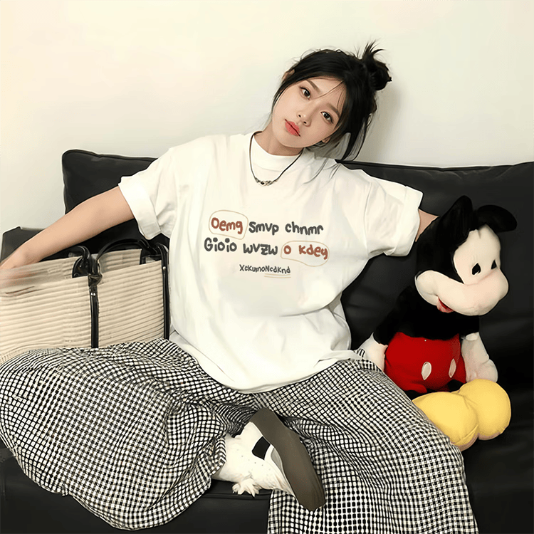 燠阳纯棉短袖t恤女精梳棉白色印花女装半袖男女同款宽松时尚情侣装 纯棉-白色OK字母 XL 【125-140斤】