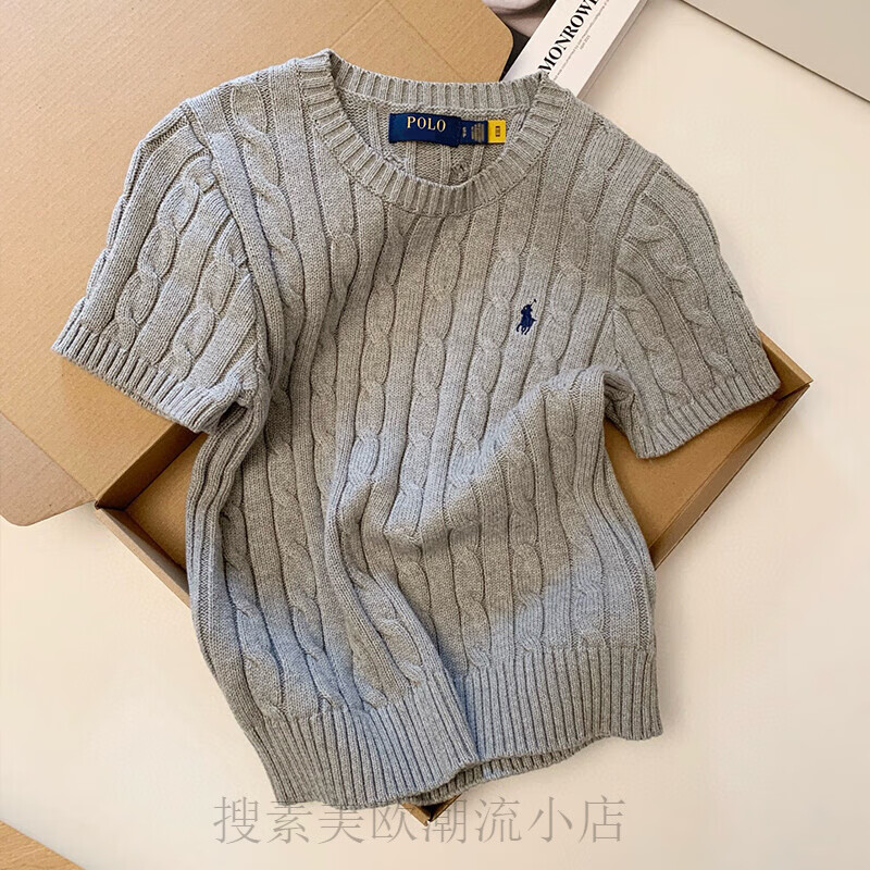 POLO SPORT美国保罗小马标刺绣短袖T恤女装针织衫休闲宽松大码时尚潮流毛衣 浅灰色 XL 建议125-135斤穿